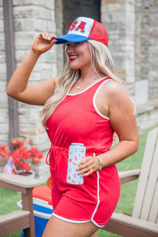 - Pockets, elastic waistband with adjustable drawstring, button closure in the back